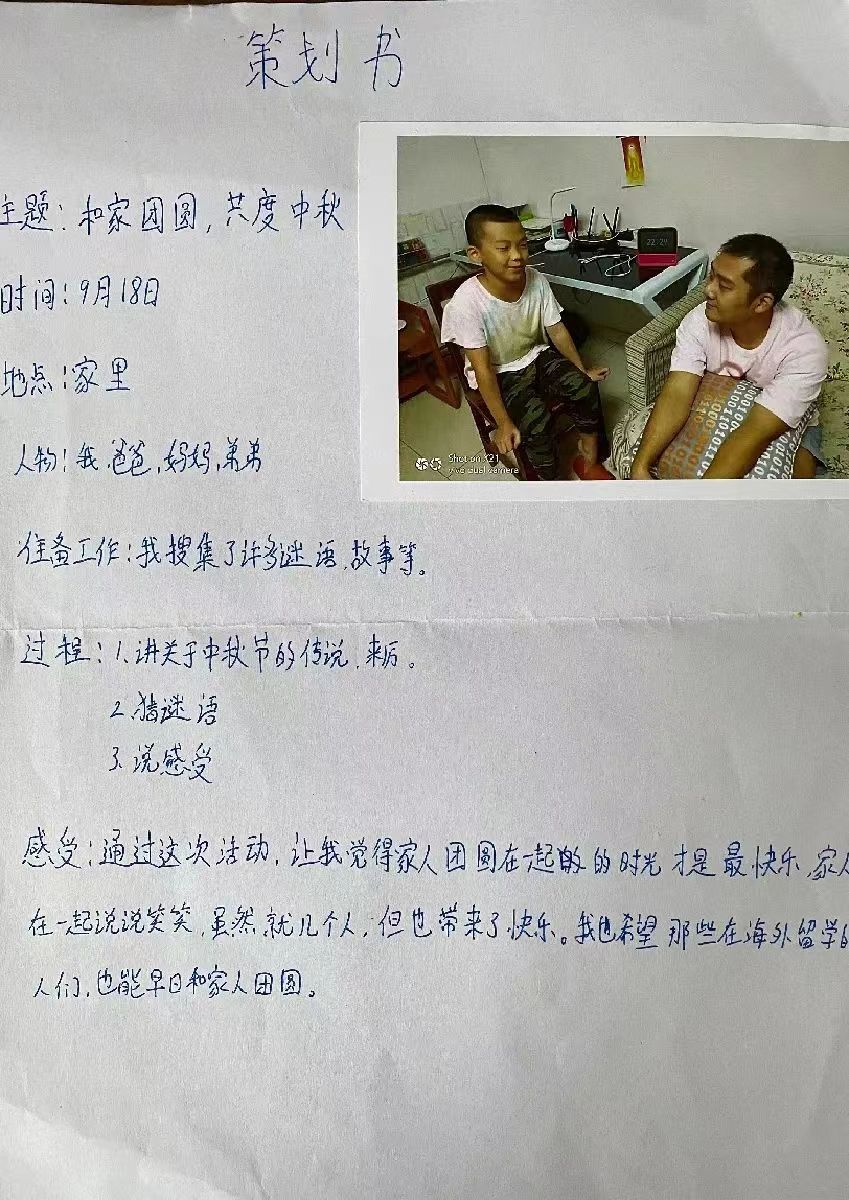 高年级的同学们,可以通过制定策划书→组织实施→总结反馈的形式,从中秋节活动的参与者,变成组织策划者。