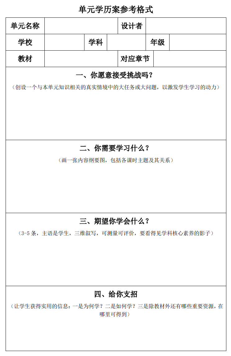 【附单元学历案参考格式】