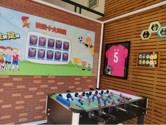 四个学校的空间都充分利用,所有的走廊、角落都是孩子们学习的地方。在参观校园的过程中,校园的每一个角落都给我们留下了深刻的印象。从学校的图书阅览室儿童视角的设计和清晰地印记可以看出孩子们经常光顾。楼道内的墙壁是学生的涂抹的“农业文明”彩绘。走廊的一角是孩子们的活动场所,墙壁上悬挂的是“种子传奇”的积累和介绍,还有大队部的宣传栏,孩子们用工整的粉笔字记录着各队部的具体分工和任务。从无土栽培实验室出去就到了“空中农场”,整个楼顶农场非常大,种植的蔬菜、农作物、花卉、果树品种繁多。在信息教室外的走廊上摆满学生的作品;低年级教室门口的墙壁上装有益智类的学具;楼间连廊是学校的博物展馆,摆有校友捐赠的真实的恐龙蛋化石和恐龙化石骨架。教学楼和宿舍楼之间用玻璃打起的棚子是孩子们的美术长廊,孩子们的美术作品、摄影作品琳琅满目,个人作品展定期在这里举行。丰富多彩的校园文化体现出学校坚守教育理念:评价是改善和发展,而不仅仅是甄别和选拔。