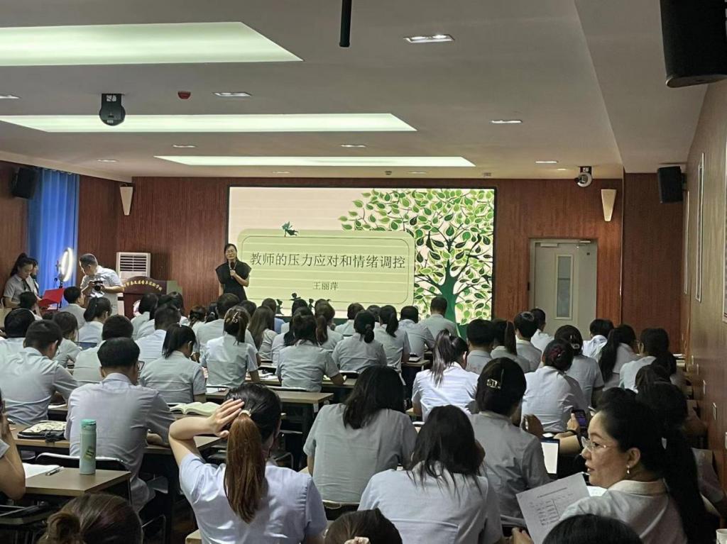 王丽萍老师就《教师的压力应对和情绪调控》专题讲座,通过互动游戏和自身案例等,阐述压力与情绪的产生机制及自我调适路径,指导教师如何获得人生幸福。